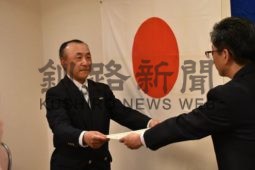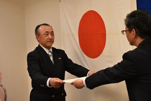 [写真/金子室長(右)から表彰状を受け取る三船さん ]