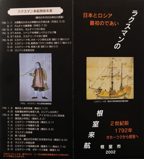 [写真/ラクスマンの根室来航を記した市教委のパンフレット ]