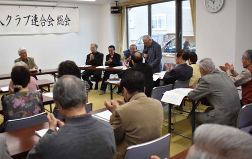 [写真/役員改選も行った総会(緑ケ岡地区老人クラブ連合会) ]