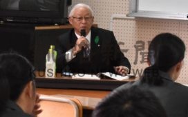 [写真/まちづくりをテーマに講演する徳永町長 ]