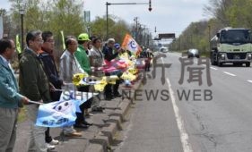 [写真/安全運転を呼び掛ける参加者 ]