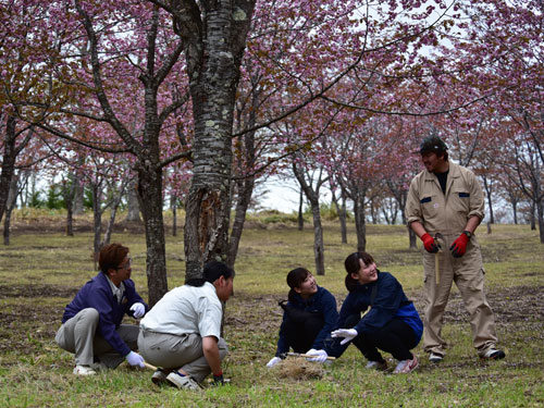 桜の木の下で 社員ら草刈り 小針グループ(2019-05-28)
