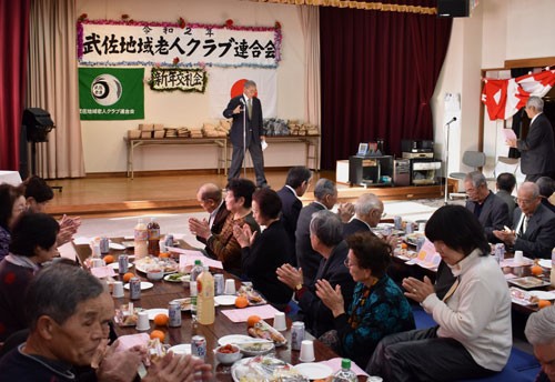 [写真/クラブ会員とサークル会員らが集った新年交礼会(武佐地域老人クラブ連合会) ]