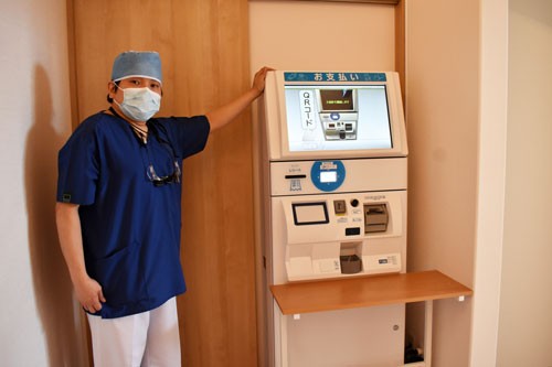 [写真/簡単スピーディーな精算を実現した専用システムを導入した大坂院長 ]