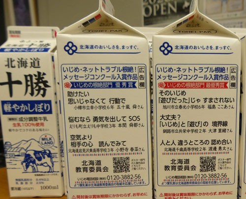 標語入り牛乳パックでいじめ根絶(2020-01-30)