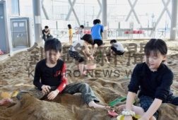 [写真/釧路市こども遊学館の砂場遊ぶ子供たち(20日午後2時30分ごろ) ]