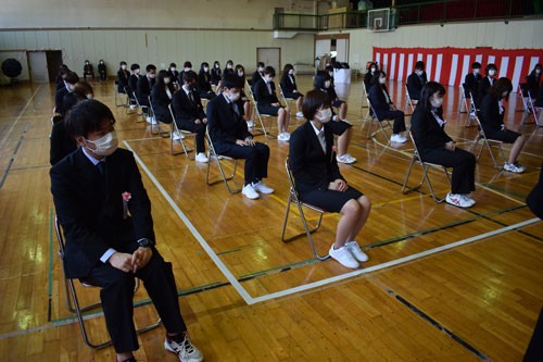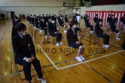 間隔開けて、誓い新たに くしろせんもん学校入学式(2020-04-04)