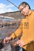 [写真/手塩に掛けた苗の状態を見る横田代表 ]