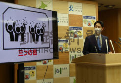 [写真/「3密」を避けるよう呼び掛ける鈴木知事 ]
