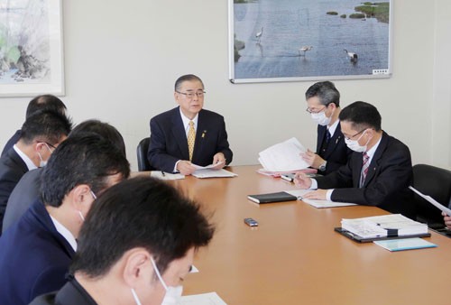 [写真/毎週月曜日の定例会合で情報を共有する本部員会議 ]