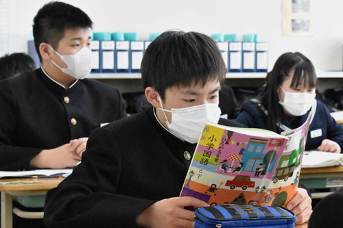 [写真/小学6年の教科書を使って授業を受ける中学1年 ]
