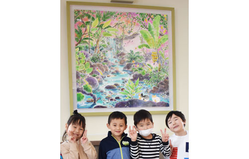 [写真/夢広がる水彩画に笑顔の園児たち ]