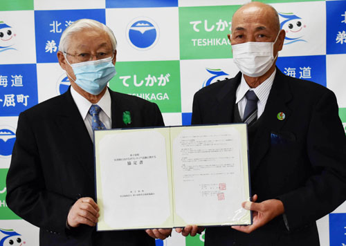 [写真/協定を締結した徳永町長(左)と星川会長 ]