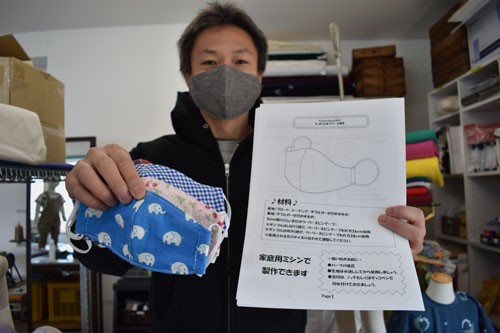[写真/すっぽり立体マスクの型紙、仕様書と完成品 ]