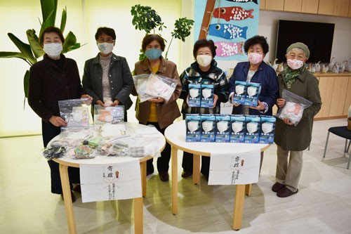 [写真/寄贈したマスクと女性ボランティアクラブのメンバー ]