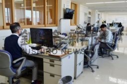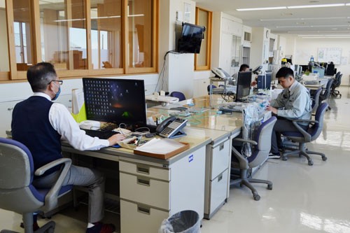 [写真/出社人数を約半数に抑え、対面の席を空けるなどの措置をとる村井建設 ]
