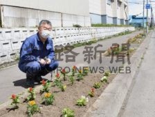 鳥取8丁目町内会、街路ますに花の苗植え(2020-05-23)