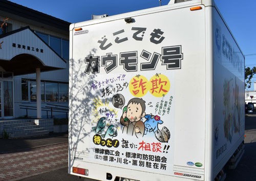 標津町商工会が移動販売車に詐欺防止啓発イラスト(2020-05-24)