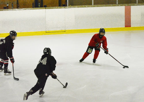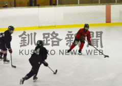 [写真/選手相互に距離を確保して、氷上練習に励むDaishinの選手ら ]