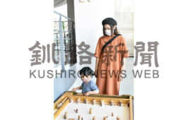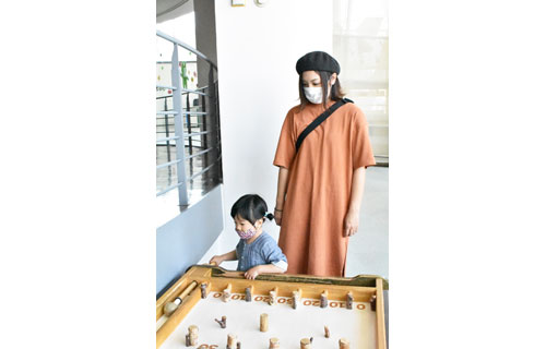 [写真/スマートボールで遊ぶ親子連れ(26日午前11時5分ごろ、釧路市こども遊学館) ]