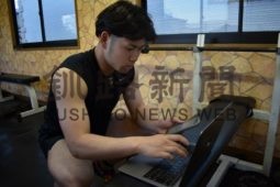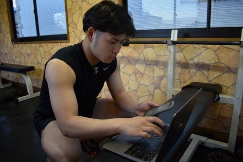 [写真/パソコンとスマートフォンを駆使して監督やコーチ、チームメートとやり取り ]