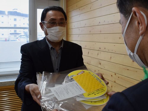 ホテル御前水顧問、マスク付きうちわ寄贈(2020-05-28)