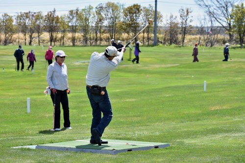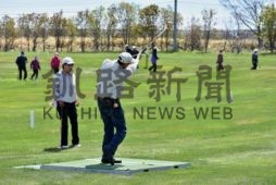 [写真/待望のプレーを楽しむ市営パークゴルフ場の利用者(26日) ]