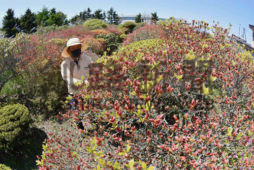 [写真/400本のツツジ群がつぼみや花を付け始めた岡村さん宅(魚眼レンズ使用) ]