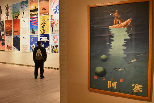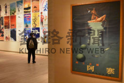 [写真/阿寒をはじめ道内観光地のポスターなどが並ぶ作品展 ]