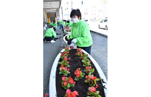 [写真/会員が力を合わせて行った花の植栽作業 ]