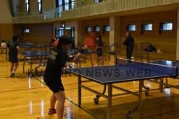 [写真/友人とのラリーを楽しむ選手 ]