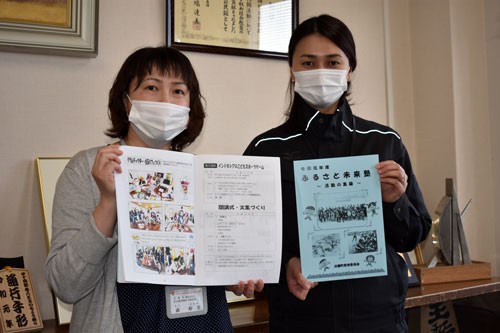 [写真/集録を手に森係長と社会教育係の清野円さん(左から) ]