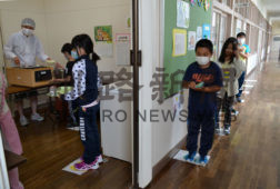 知方学小、楽しくコロナ対策 靴形プレート手作り (2020-06-18)
