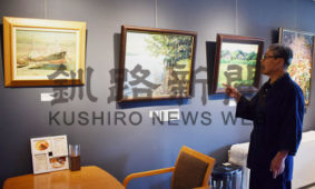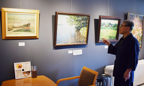 [写真/今年度最初の「崎地優 油絵展」を開催中のおたのしけギャラリー ]