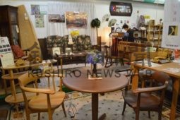 [写真/飛騨産業のアームチェアやテーブル(手前)などを安く販売する木の家具セール ]