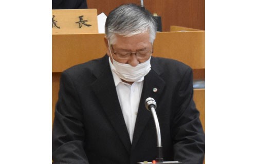 [写真/町議会で謝罪する金澤町長 ]