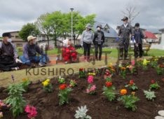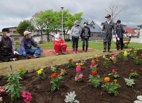 [写真/町内会憩いの場となる花壇を整備した会員 ]