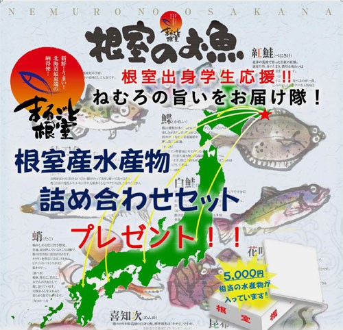 [写真/「根室出身学生応援!ねむろの旨いをお届け隊!」の公募チラシ ]