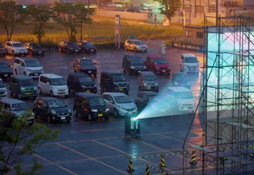 [写真/大迫力の映像とサウンドを楽しみながら車の中で映画鑑賞を楽しむ来場者たち ]