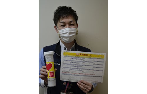 [写真/安心バトンの緊急連絡カードと容器 ]