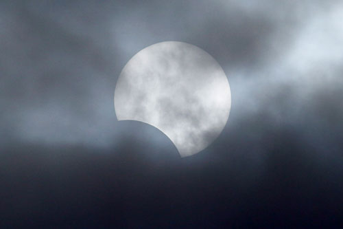 [写真/釧路市内で確認された部分日食(21日午後4時45分ごろ、黒田文夫撮影) ]