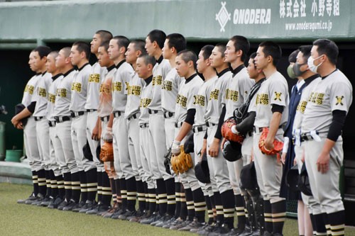 [写真/【Bブロック代表決定戦、釧湖陵ー釧北陽】七回コールド負けとなった釧北陽。敗戦と向き合うナイン ]