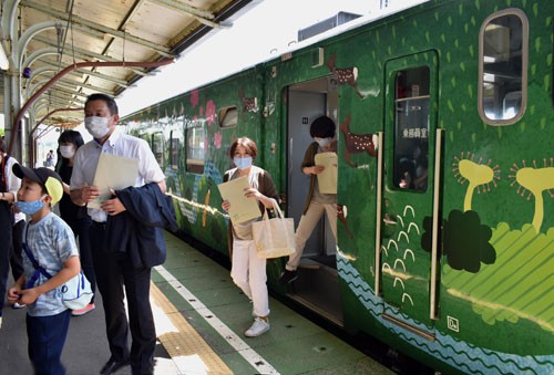 [写真/JR花咲線で「ローカルディスタンス」を提唱する2両運行が始まった(1日午前10時51分、根室駅) ]