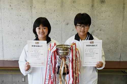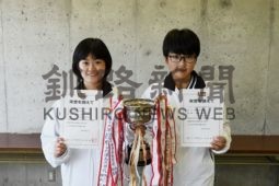 [写真/1ゲーム差で競り勝った女子ダブルスの船水・澁谷組(釧北陽) ]