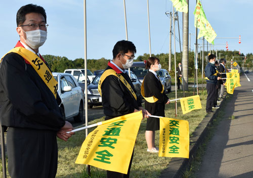 交通安全願い黄色い旗の波運動(2020-10-04)