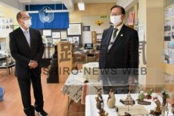 [写真/一本嶋校長(左)から博物館の説明を受ける竹内さん ]