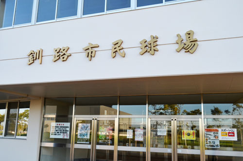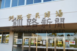 [写真/「釧路市民球場」の部分に愛称を掲示することができる市民球場の正面玄関 ]