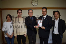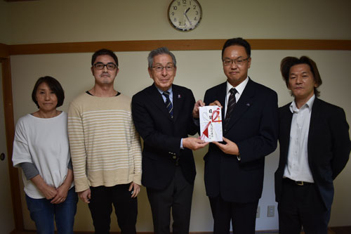 [写真/目録を手に山石委員長代行(右から2人目)ら ]