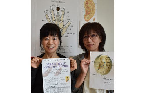 [写真/「いつでも手軽にできる手指・眼ヨガ、耳つぼマッサージを学びませんか」と吉村さん(左)と村上さん ]