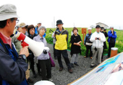 [写真/トコロジストの案内でチャシ跡群を楽しむツアー客 ]